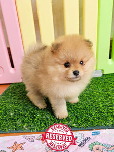 ¡Te presentamos a Zape, nuestro encantador cachorro de Pomerania Mini o Toy, de un vibrante color naranja intenso! Este pequeño sólo pesará 2 kg como sus padres, es ideal para llevarlo a cualquier sitio de viaje, es la combinación perfecta de elegancia y ternura, con un pelaje exuberante y un carácter juguetón que lo convierte en el compañero ideal para cualquier familia. -